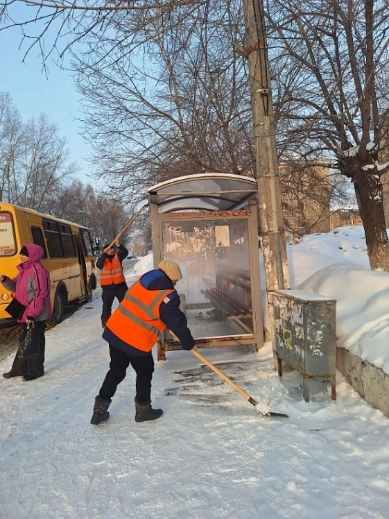 Ещё в Барнауле очищают от снега и наледи остановочные павильоны общественного транспорта на улицах Георгиева, Балтийской, Попова, Германа Титова, Павловском тракте и других.