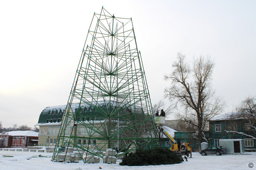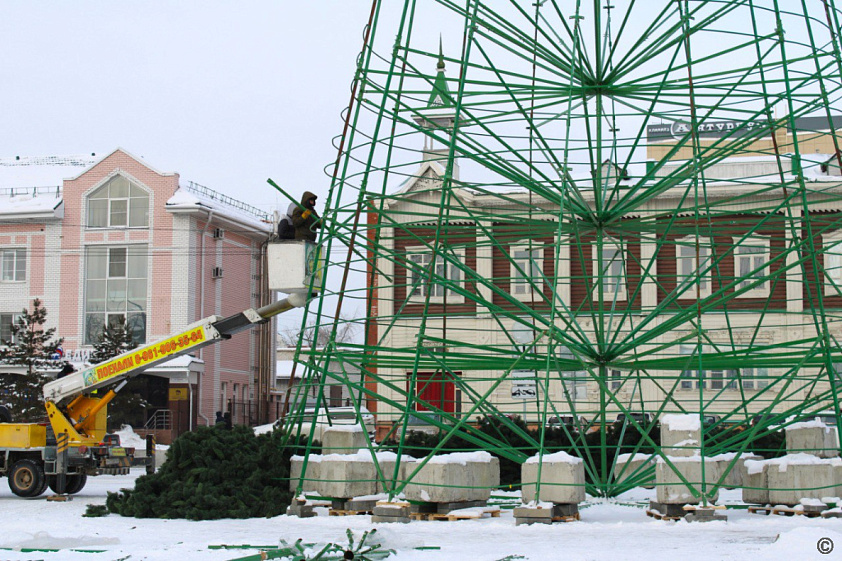 Одним из основных украшений новогоднего городка, который разместится в Барнауле на площади Свободы, станет 32-метровая ель. Подрядчик уже занят её монтажом, а после завершения этих работ праздничное дерево украсят шарами, бантами и звездой.