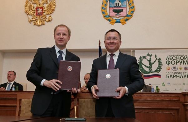 Соглашение подписали сегодня, 16 июля, в рамках Национального лесного форума временно исполняющий обязанности Губернатора Алтайского края Виктор Томенко и президент Санкт-Петербургской Международной товарно-сырьевой биржи Алексей Рыбников. На церемонии подписания присутствовал председатель Комитета Государственной Думы РФ по природным ресурсам, собственности и земельным отношениям Николай Николаев.