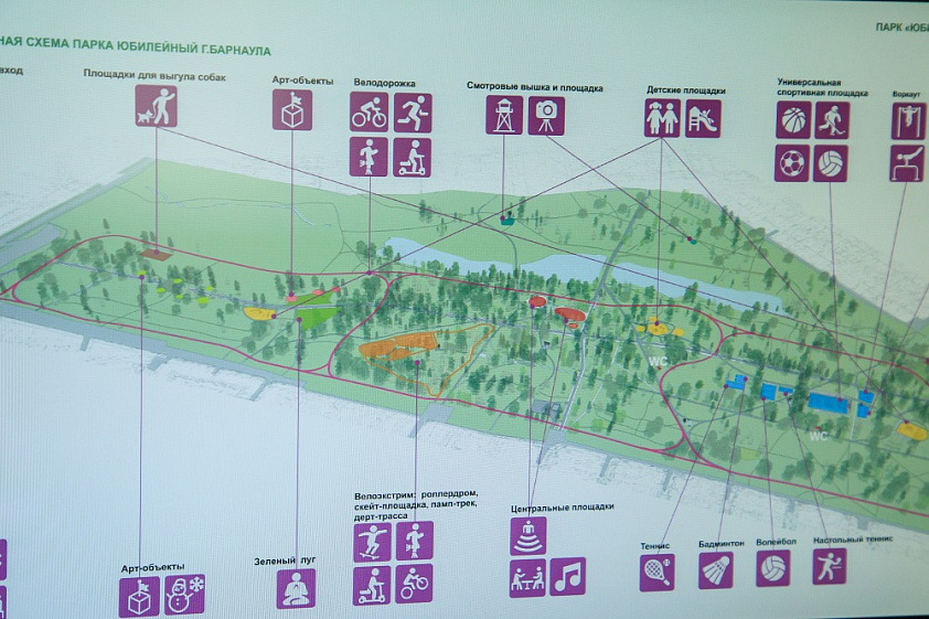 В настоящее время уже разработана общая концепция благоустройства парка «Юбилейный», презентацию которой провел доцент Алтайского государственного технического университета Артём Малыгин.