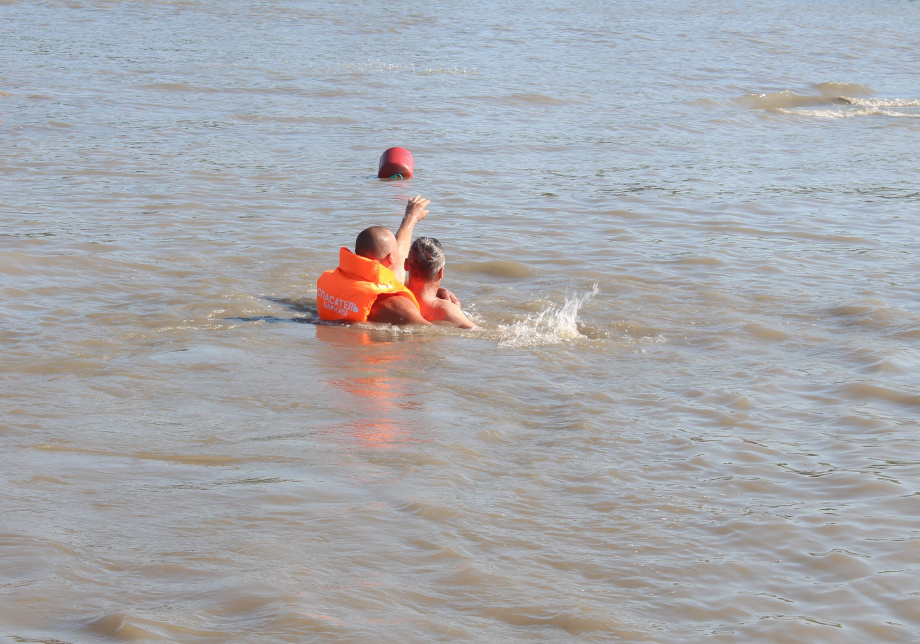 В роли пострадавшего выступил один из спасателей, и он утонуть не может, поскольку отлично плавает и сам прекрасно знает, как спасти себя и других.