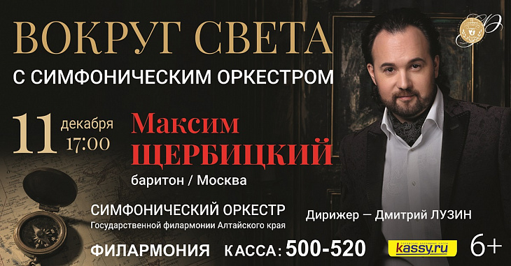 На сцену краевой филармонии с мировыми хитами на пяти языках выйдет лауреат международных конкурсов и фестивалей баритон Максим Щербицкий.