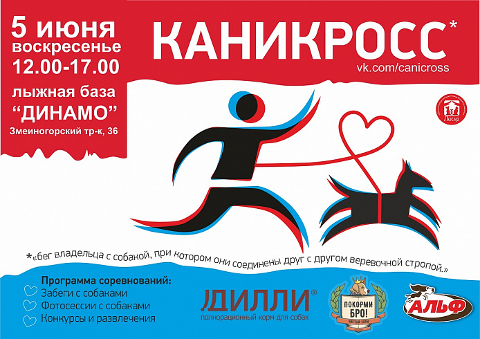 В воскресенье, 5 июня, на лыжной базе «Динамо» (Змеиногорский тракт, 36) пройдут любительские соревнования «Каникросс-2022». Каникросс (от лат. canis — «собака» и англ. cross — «пересекать») — это вид соревновательного бега человека с собакой по пересечённой местности. Этот вид спорта отличается от простого бега с псом тем, что в каникроссе питомец прикрепляется к талии бегуна с помощью эластичного шнура (потяга).