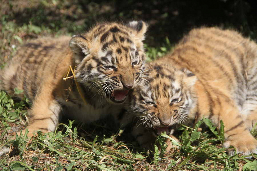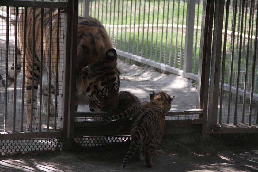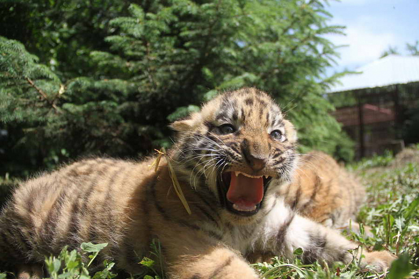Тигрица Багира и тигр Шерхан вновь стали родителями — радостную новость о потомстве зоопарк в своих соцсетях сообщил ещё в апреле. За годы совместной жизни в «Лесной сказке» у этой полосатой пары родилось уже 24 тигрёнка. Нынешним, мальчику и девочке, полтора месяца, и они, конечно, ещё малыши, но уже вполне себе серьёзные: шипят, строжатся, когда их вытаскивают на фотосессию. В общем, ведут себя как настоящие хищники.