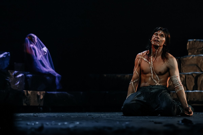 Стоило раскрыться занавесу, как сразу стало понятно: мир переживает последствия катастрофы. Вся сцена покрыта вулканическим пеплом, а неотъемлемой частью декораций являются потрепанные ткани, покосившиеся стул и кровать. Да и герои, населяющие виллу на Женевском озере, то и дело рассуждают о смерти, апокалипсисе, упоминают «Декамерона», написанного под впечатлением от эпидемии чумы.