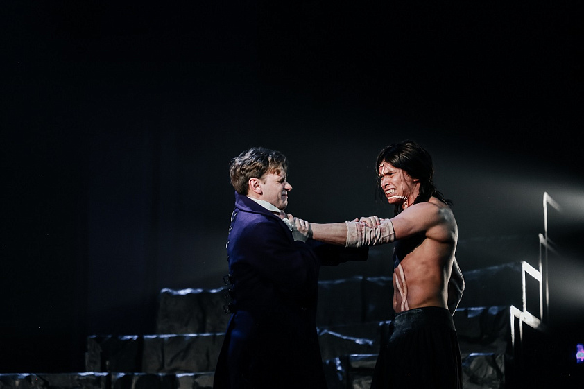 Реальность и фантазия здесь тесно переплетены. А когда на свет рождается детище Виктора Франкенштейна, которого исполнил Роман Чистяков, то спектакль становится пластически продуманным действом, где движения и реплики персонажей обретают свой ритм, свое дыхание. Неслучайно в качестве режиссёра по пластике в команду спектакля был приглашен известный артист и хореограф Артур Ощепков, который много лет работал в театре Романа Виктюка, где большое внимание уделялось пластическому рисунку. Поэтому в спектакле довольно много сцен, требующих от актёров больших физических усилий.