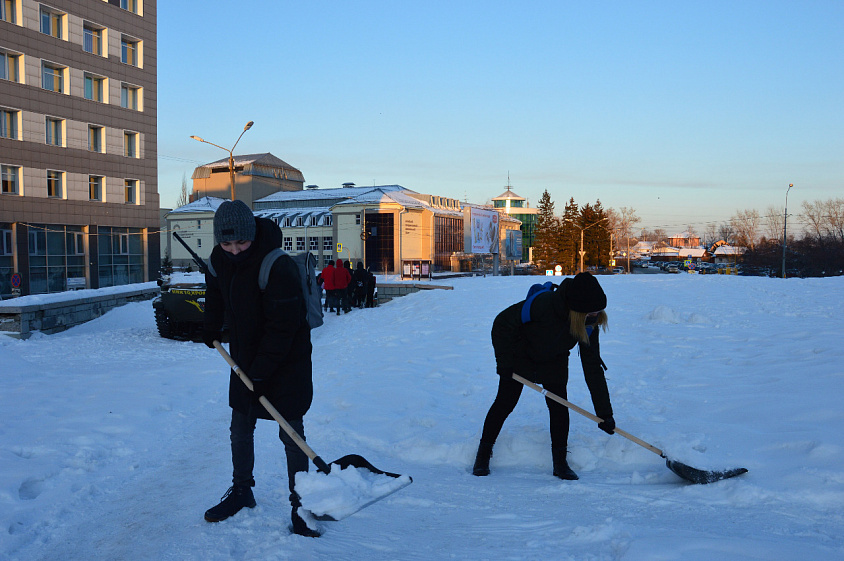 Штаб студенческих отрядов АлтГТУ занимался расчисткой лестницы с Комсомольского проспекта, ведущей к Вечному огню и провёл работы по уборке снега на лестнице у городской больницы.