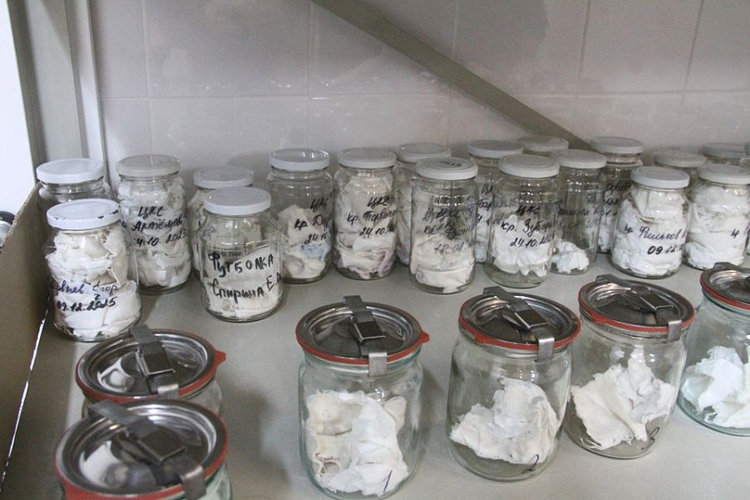 «В нижнюю часть ёмкости помещаем вещдок, — для наглядности Александр Вольных кладёт в банку варежку, найденную на месте преступления. — В верхнюю — чистые салфетки. После этого нижняя часть подогревается на водяной бане, а в верхнюю заливается жидкий азот. Он выкипает, запаховые следы поднимаются вверх и оседают на салфетках. Это и будет запаховая проба, предположительно с запахом предполагаемого преступника».Предметы на экспертизу поступают разные, чаще всего это орудия совершения преступления — ножи, огнестрельное оружие, всевозможные ломы, фомки и гвоздодёры, и даже стулья. Бывают и фрагменты деталей автомобилей, бытовых предметов, которых касался преступник, одежда.