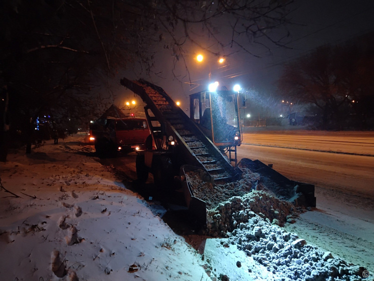 Дороги и тротуары города очистили и обработали антигололедными средствами. Ночью на улицах работало 94 машины.