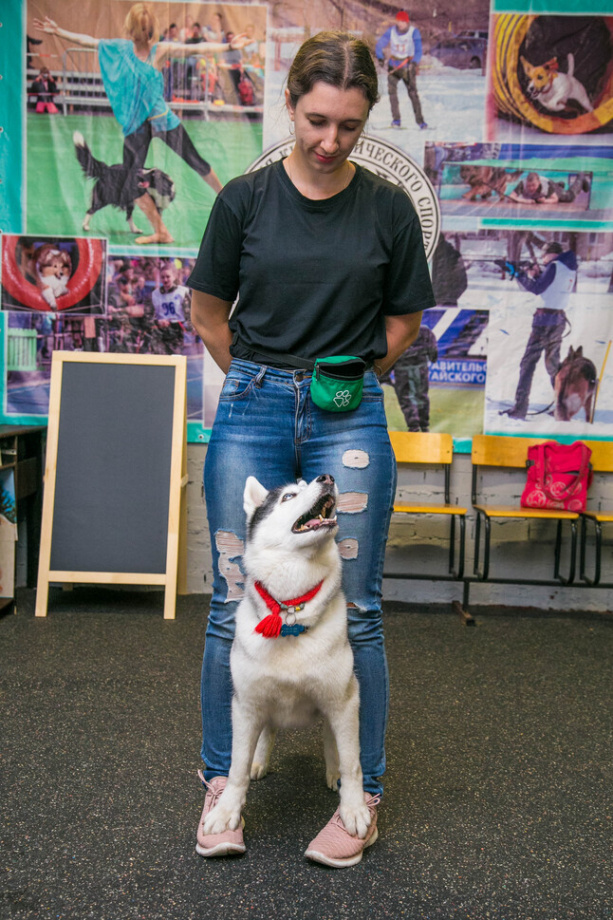 «С Айкой мы занимаемся постоянно. Она знает около 150 трюков. Для этого мы тренируемся с ней каждый вечер: сначала повторяем уже знакомые команды, потом начинаем изучать новые. До трёх лет не пропускали ни одного дня, — рассказывает Ксения. — Моя собака уже опытная и воспитанная, в этот центр ходим для расширения кругозора. Здесь мы проходим новую для нас дисциплину — ноузворк».