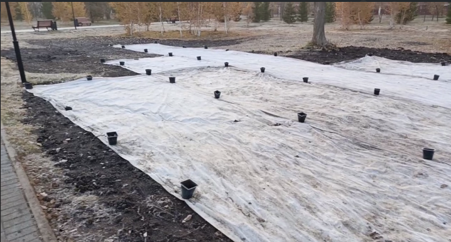 Посевы этой красивой газонной травы выполнили на ещё одной подготовленной территории зелёной зоны.