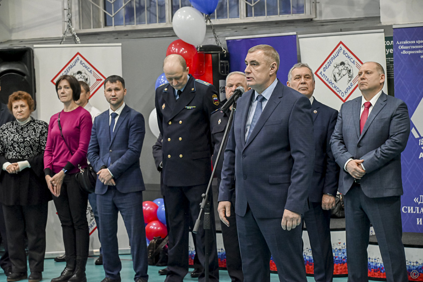 «Разрешите от имени Управления ФСБ России по Алтайскому краю, краевого совета „Динамо“ и всех динамовцев поприветствовать вас на ежегодном фестивале бокса, который в этом году стал юбилейным, — обратился к участникам и гостям Роман Плотников. — Символично, что это совпало с 80-летием Победы в Великой Отечественной войне, Годом защитника Отечества, столетием Алтайской краевой организации общества „Динамо“. Традиционно мы проводим турнир в декабре, в преддверии профессионального праздника. Соревнования посвящены памяти сотрудников органов безопасности, погибших при исполнении служебного долга, в том числе в зоне специальной военной операции. К сожалению, в этом году в зале портреты восьми наших товарищей, сотрудников, отдавших самое ценное — жизнь — ради безопасности нашей страны, будущего наших детей. Хочу пожелать всем участникам, болельщикам здоровья, благополучия, мирного неба, спортсменам соответствующих соперников, болельщикам — ярких впечатлений».Председатель АКЗС Александр Романенко также обратился к спортсменам, тренерам и болельщикам: