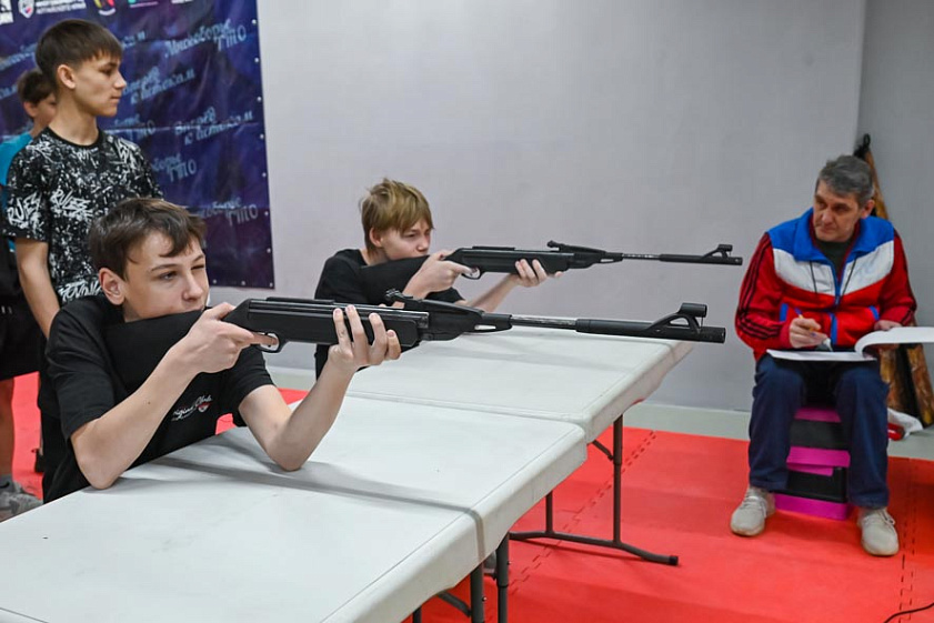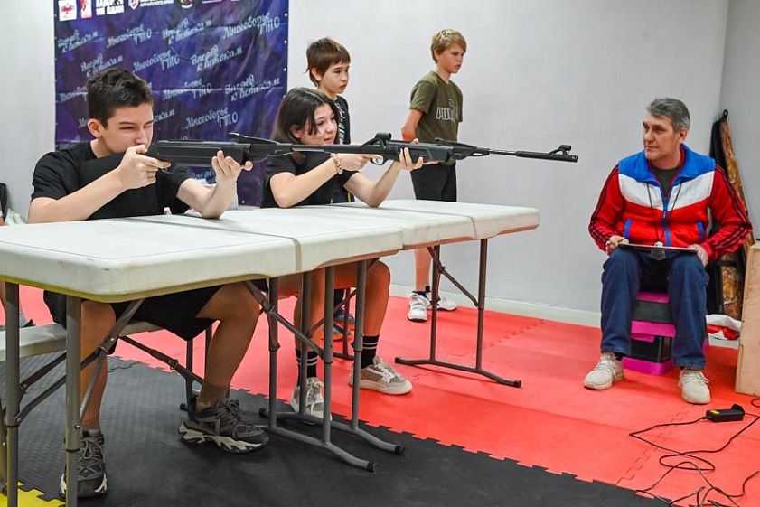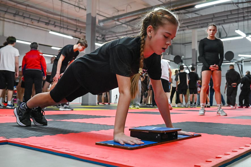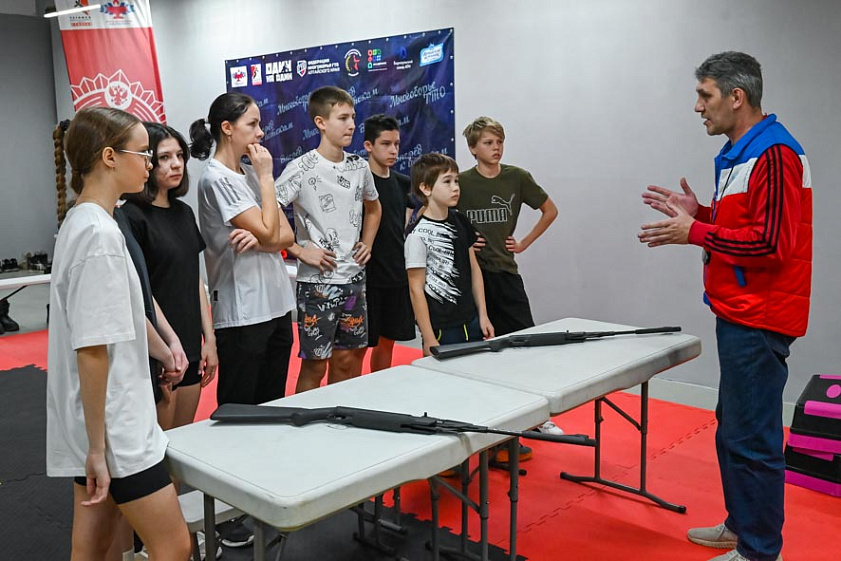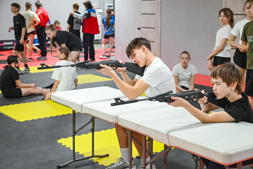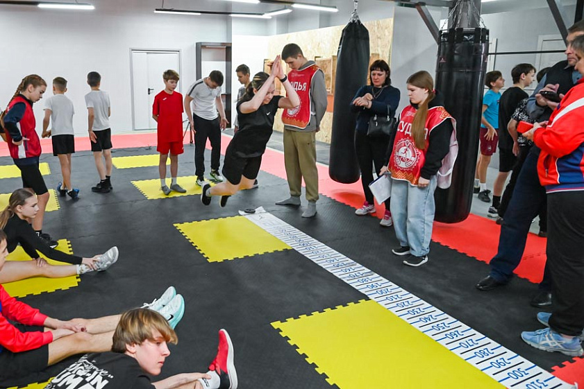 Сегодня ребята боролись за звание лучших в спортивном зале «Империя атлетов». Они стреляли из электронного оружия, прыгали с места, подтягивались и отжимались, а также поднимали туловище из положения лёжа на спине и проверяли свою гибкость.