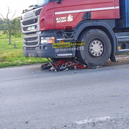 Вечером 29 июля 2022 года на трассе в Шелаболихинском районе произошло жёсткое ДТП: мотоцикл попал под большой грузовик. На опубликованных в паблике «Инцидент Барнаул» видно, что фура буквально раздавила двухколёсное транспортное средство.