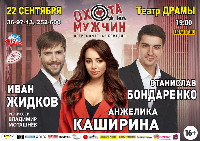 Сезон гастролей в краевой столицей откроет постановка «Охота на мужчин» продюсерского центра «Дофамин», созданного популярным актёром театра и кино Иваном Жидковым.