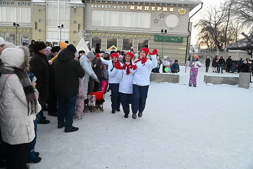 — Сегодня на протяжении трёх часов барнаульцев будут радовать своими выступлениями заслуженный коллектив самодеятельного художественного творчества Алтайского края театр танца «Иван да Марья», народный театр танца имени Розы Фибер, хореографическая группа хора «Сибиряночка», вокально-эстрадная студия «Доминанта», театральная студия «Главные роли» и другие коллективы ДК «Город». Всего будет задействовано 120 участников, будет исполнено 30 номеров, предусмотрена развлекательная программа, — поделился директор Дворца культуры города Барнаула Роман Ильин. — Мы специально сшили тёплые костюмы для выступлений на улице, для артистов предусмотрены тёплые гримерки и раздевалки. В другие дни горожан будут радовать творческие коллективы других Домов культуры краевой столицы.