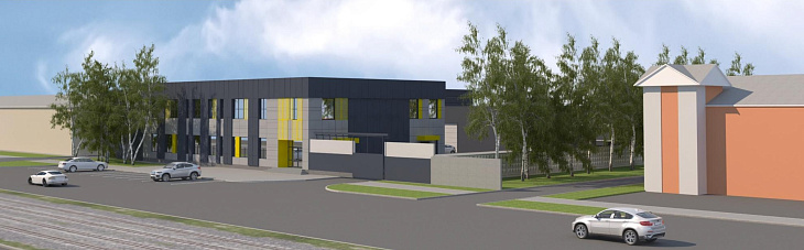 Склад будет пристроен к основному административно-складскому зданию, выходящему фасадом на улицу Попова. Цветовая гамма возводимого объекта перекликается с основным зданием — в светло- и тёмно-серых тонах с жёлтым акцентом.