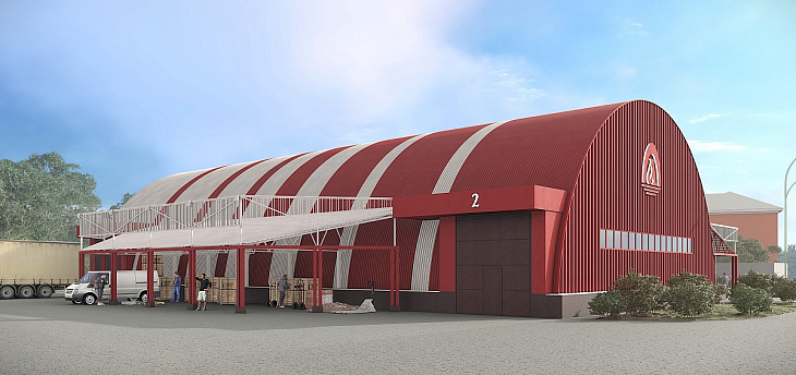 Здание склада по заказу ООО «СК “СЭМ”» разработала «Мастерская Золотова». По словам архитектора Владимира Золотова, двухэтажное компактное здание квадратной формы будет расположено во дворе и по задумке заказчика завершит комплекс принадлежащих ему на участке строений – административно-торгового и складских помещений.