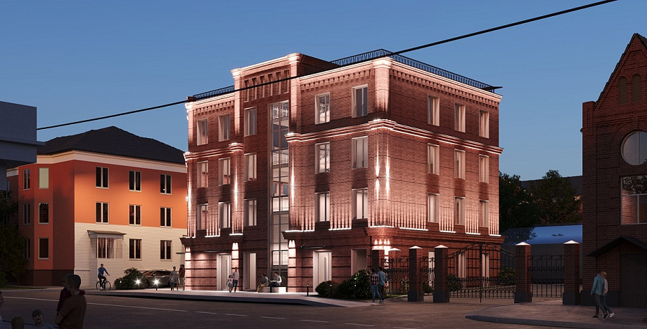 Здание пятиэтажного отеля Г-образной формы с подвалом и номерным фондом на 30 комнат и 60 мест для компании «Отель 22» разработала проектная мастерская «АльфА-ПроекТ».