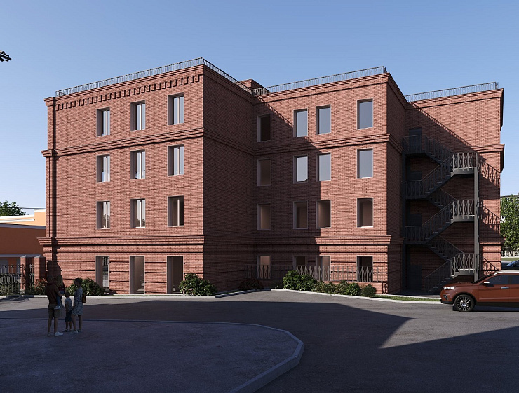 Второй вариант подчёркивает стилистику объекта культурного наследия. В этом случае здание будет из красного кирпича — чтобы поддержать историческую среду. Вокруг гостиницы по периметру запланировано кованое ограждение с кирпичными столбами.