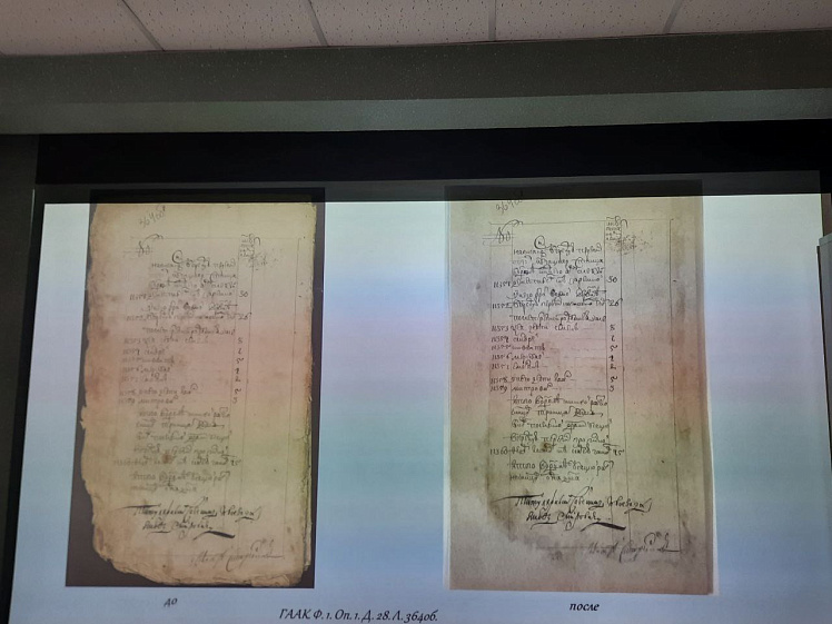 — Реестр уникальных документов составляется именно для того, чтобы обеспечить особые условия хранения и особое отношение входящих в него документов, к которым прежде всего относятся реставрационные мероприятия. Представленные документы были отнесены к особо ценным достаточно давно, и мы принимали определённые меры по обеспечению их сохранности. Однако в предыдущие периоды, а документам около 300 лет, условия хранения были далеки от нормативных по температурно-влажностным и световым режимам. И, как следствие, подверглись негативному воздействию — переувлажнению и грибковому поражению. Остановить процесс старения бумаги удалось только благодаря современным техническим возможностям, — пояснила директор Государственного архива Алтайского края.