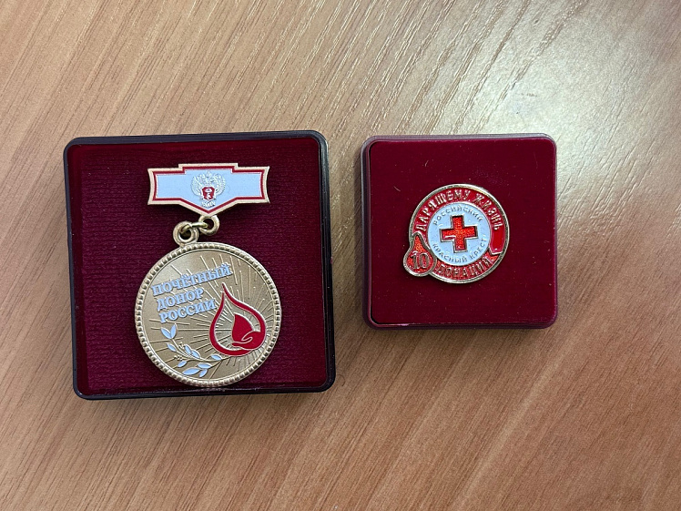 Донорская деятельность поощряется на государственном уровне. Так, например, наш собеседник получил несколько наград, первая из которых — нагрудный знак «Почётный донор России».