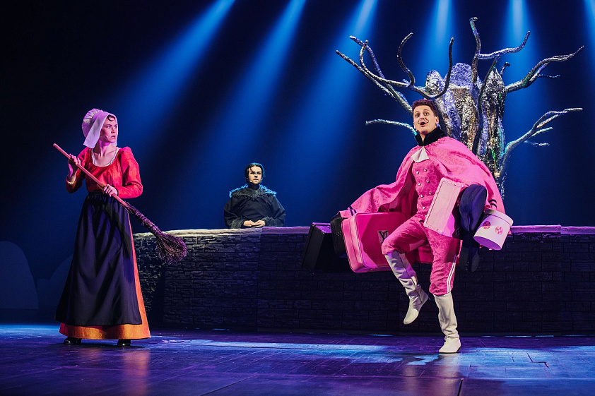 Второстепенные персонажи этой истории тоже очень весёлые и забавные. Чего только стоит принц соседнего государства, который весь спектакль бегает по сцене туда-сюда и тараторит по-французски, а переводят его речь голосом Леонида Володарского, озвучивавшего фильмы эпохи видеосалонов!