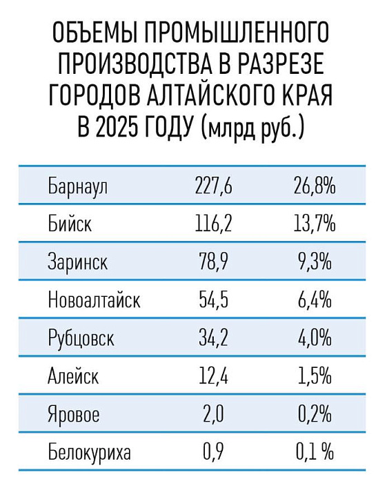 «Промышленность — одна из ключевых для развития Алтайского края отраслей экономики. В денежном выражении объем промышленного производства в регионе в прошлом году увеличился на 5%. Общая стоимость произведенной и отгруженной промышленной продукции приблизилась к 850 миллиардам рублей. Даже в существующих сложных экономических условиях наши заводы устойчиво развиваются», – обозначил итоги Виктор Томенко.