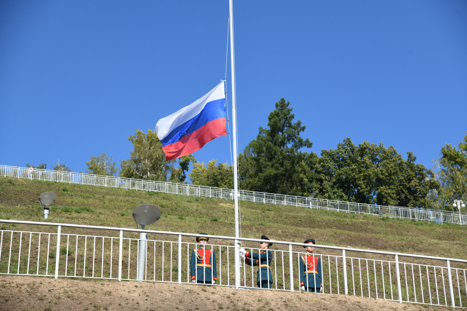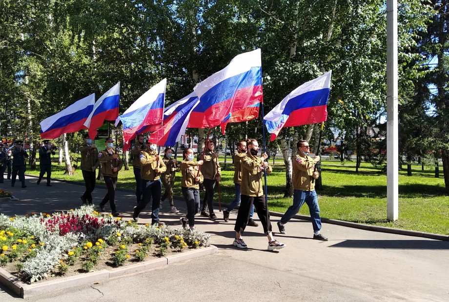 В 11 часов в воскресенье, 22 августа, на набережной Оби состоялась церемония поднятия Государственного флага России. Под живое исполнение гимна Барнаульским академическим хором им. А.Б. Тарнецкого курсанты роты почётного караула БЮИ подняли Государственный флаг страны. В небо полетели бело-красно-синие шары, выпущенные медиками-волонтёрами, стройотрядовцами и школьниками.