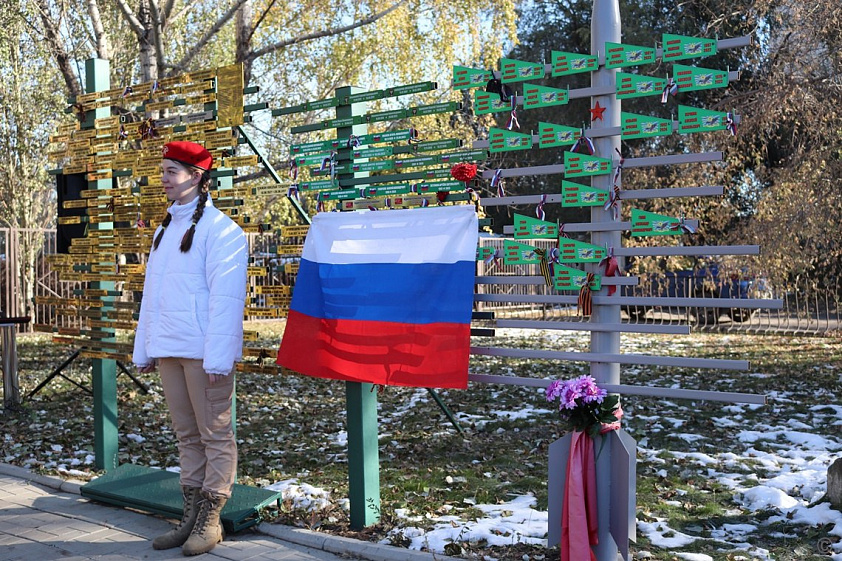 В мероприятии участвовали родственники героев специальной военной операции, чьи имена сегодня были занесены на «Дерево памяти», представители ветеранских организаций, Ленинского отряда народной дружины «Барнаульская» и юнармейцы «Движения первых» школы №126.
