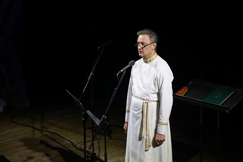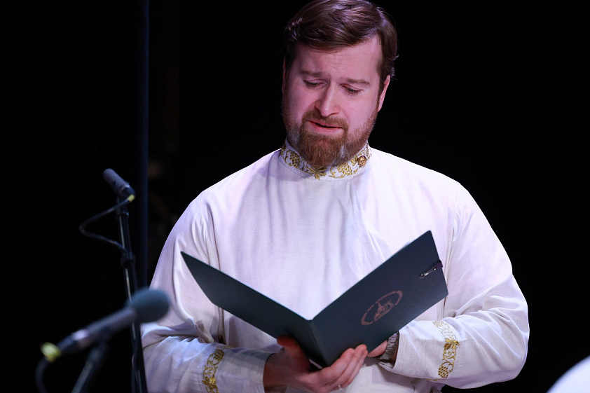 Так как первая часть концерта была посвящена рождественским песнопениям, то со зрителями в зале чтецы — Игорь Краснощеков и Георгий Сафонов — общались так, словно зритель находился не в филармонии, а в храме. Говорили о чуде Рождества, о значимости и величии появления Богомладенца, о том, что именно Рождество является главным семейным праздником, а не Новый год.