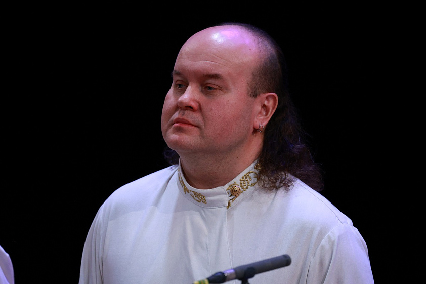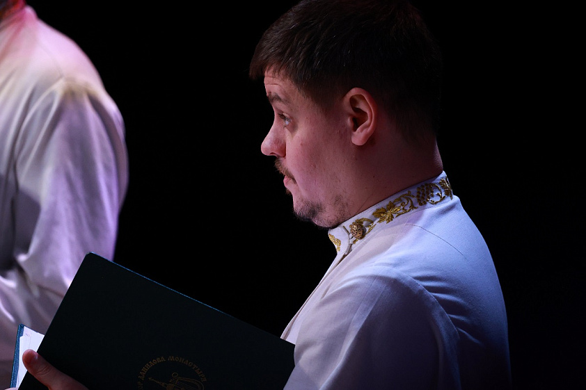 — Наши солисты обладают не только вокальными, но и личностными качествами. А личностные качества — это очень такая опасная тема, с погружением в психологию. Я скажу только одно, что на концертной эстраде церковному и особенно монастырскому хору нужно вести себя так, как он ведёт себя на службе. И соблюдать все каноны исполнения на сцене, как будто для тебя не существует публики в зале. И чтобы певец умел отдавать свой внутренний мир через свой голос. То есть в храме, в монастыре певчий должен вести себя и работать ровно так, как он работает на концертной эстраде. Это два таких сообщающихся сосуда, и ни один из них не должен быть пустым. Поэтому храм мы переносим на концертную эстраду, концертную эстраду мы переносим в храм. Это не с точки зрения самого действа, а это с точки зрения душевного состояния каждого человека в хоре. Вот тогда может состояться «консенсус» между исполнителями и прихожанами в храме, и слушателями в концертах, — поделился регент хора.