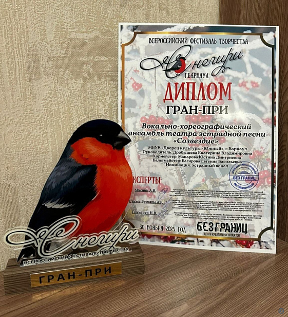 Образцовый коллектив самодеятельного художественного творчества Алтайского края Театр эстрадной песни «Созвездие» дворца культуры «Южный» завоевал Гран-при на Всероссийском фестивале творчества «Снегири».