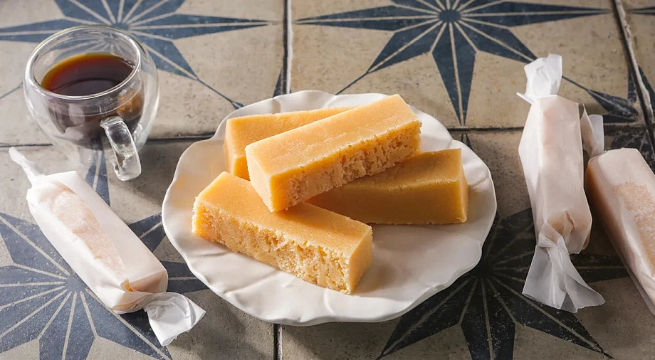 Как приготовить: подготовьте форму для конфет. Подойдёт небольшая стеклянная (размером примерно 20х30 см). Её необходимо выстелить пищевой плёнкой так, чтобы были закрыты стенки и дно. Молоко налейте в кастрюлю. Добавьте сгущёнку, сливочное масло и сахар. Поставьте на сильный огонь. Помешивая, доведите до кипения. Огонь уменьшите до слабого и варите молочную смесь для конфет до карамельного цвета (до температуры 130° C). Периодически перемешивайте. Снимите молочную смесь для конфет с огня, поместите на холодную водяную баню и сразу же взбейте миксером на самой высокой скорости в течение пяти минут. Перелейте получившуюся массу в подготовленную форму. Дайте остыть и уберите форму в холодильник на 30 минут. Можно также оставить массу на 3–4 часа при комнатной температуре. Затем достаньте затвердевший пласт из формы, помогая себе краями пищевой плёнки. Переверните получившуюся заготовку на доску. Снимите плёнку. Нарежьте затвердевший пласт острым ножом на конфеты. Заверните каждую в лист бумаги для выпечки или фольги. Храните конфеты при комнатной температуре в сухом тёмном месте.