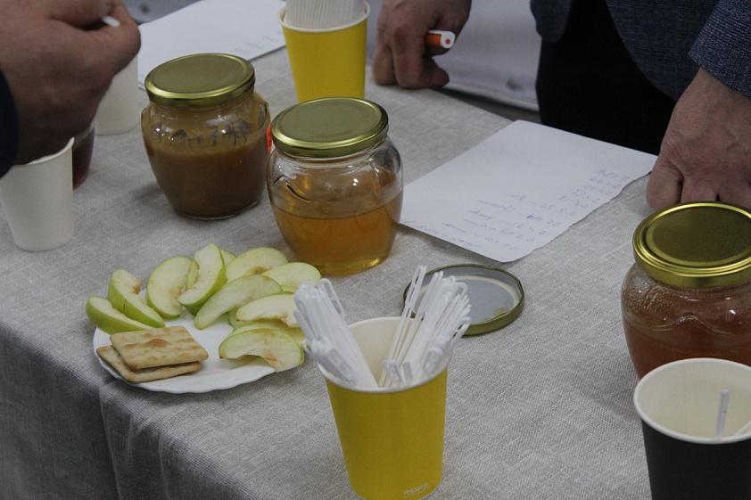 На этапе с дегустацией мёда конкурсантам предложены десять образцов. После заполнения бланков завесу тайны приоткрывает пчеловод, медовый сомелье Владимир Зырянов, председатель региональной общественной организации «Пчеловоды Алтая»: