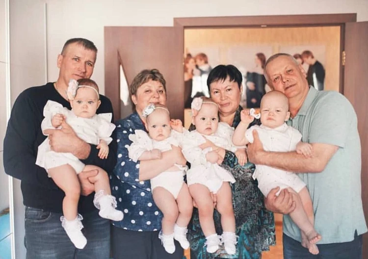 Малыши из многоплодной беременности появились на свет немного раньше срока — на 36-й неделе, но родились здоровыми и крепкими. В честь демографического «подвига» город выделил семье трёхкомнатную квартиру, а ухаживать за детьми молодым родителям помогала большая группа поддержки в лице бабушек и дедушек.