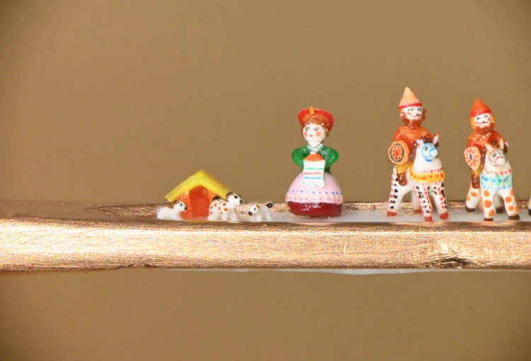 Как сообщает «КП-Новосибирск», высота игрушек варьируется от 0,16 мм (собачка) до 1 мм (богатырь на коне). Работа над композицией заняла, по словам мастера, месяц.