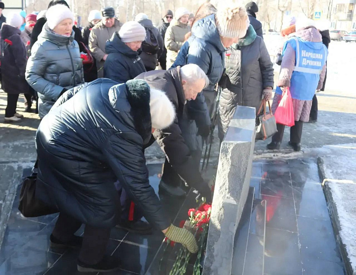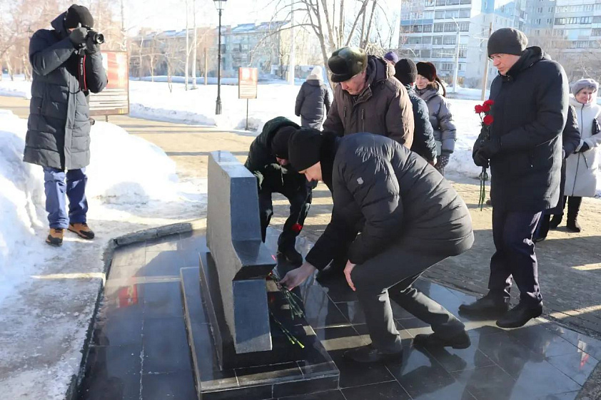 В церемонии возложения приняли участие глава администрации Ленинского района Евгений Авраменко, генеральный директор Барнаульского завода АТИ, председатель Попечительского совета Фонда В. А. Шаманова «Защитники Отечества» Артём Шамков и представители ветеранских общественных организаций Ленинского района.