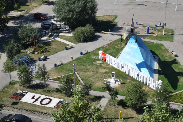 К юбилею Индустриального района в поселке Новосиликатном празднично оформили сквер Победы.