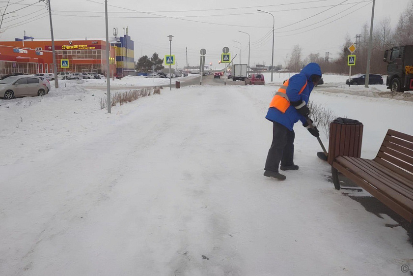 Работы по очистке снега на общественных пространствах продолжаются, сообщили на официальном сайте города.