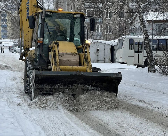 На территории Индустриального района продолжается работа по очистке внутривартальных проездов от снега с привлечением специализированной техники.