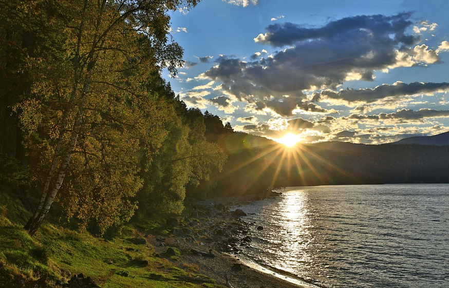 Осенний рассвет запечатлели на Телецком озере в алтайском заповеднике