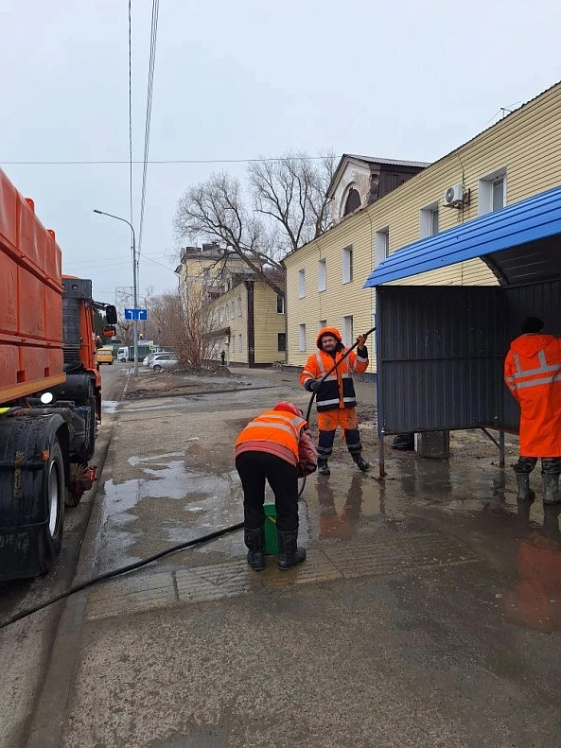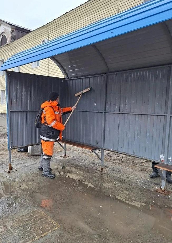 13 апреля 2026 года в Барнауле начали мыть остановочные павильоны и дорожные ограждения.
