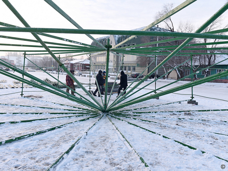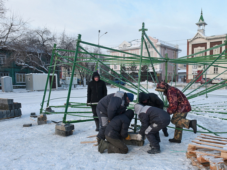 Уже готова фигура «2026», гирлянды для деревьев, банты для новогодней елки. Закончили ремонтировать звезду на верхушке и сварили каркасы для консолей «Бокал». Закупили шары и зимнюю горку. Все работы нужно завершить до 25 декабря, а 26 декабря планируется открытие главной городской елки.