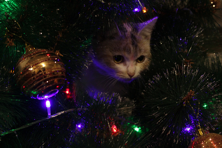 Осторожными нужно быть и с ёлочными бусами мелких размеров. Животное, заигравшись, может откусить и проглотить какое-то их количество, что тоже не поднимет праздничного настроения хозяевам.