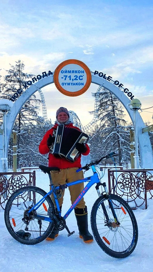 31 января 2025 года он стартовал из Новосибирска, а спустя ровно двенадцать месяцев добрался до якутского Верхоянска. За это время путешественник проехал более 50 регионов России — на велосипеде и с аккордеоном. О своём путешествии Клим рассказал «КП-Новосибирск».