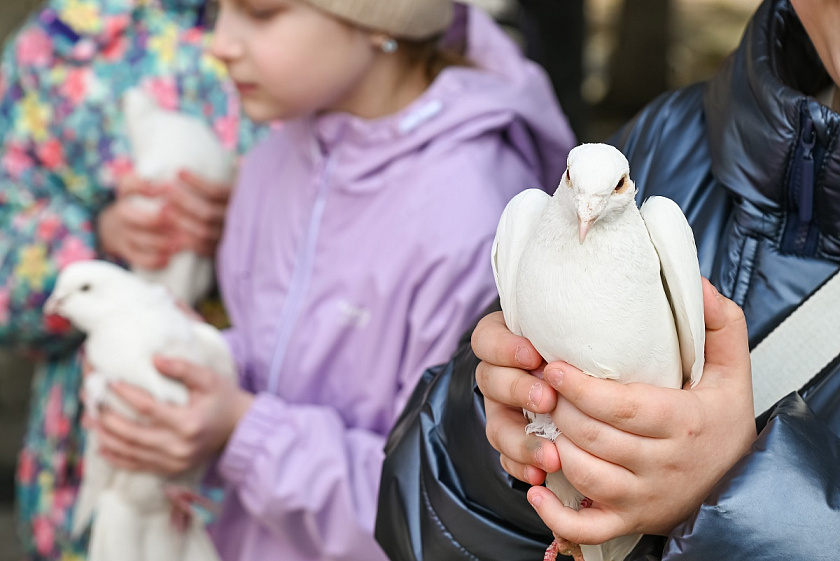В завершение праздника гостей ждал голубиный салют. Возможность выпустить голубей досталась одним из самых маленьких участников мероприятия. Ребята смогли самостоятельно взять белоснежных птиц в руки и выпустить в воздух, создав салют. После все желающие прошли на экскурсию по экоцентру, прогулявшись по его территории и посетив мини-зоопарк.