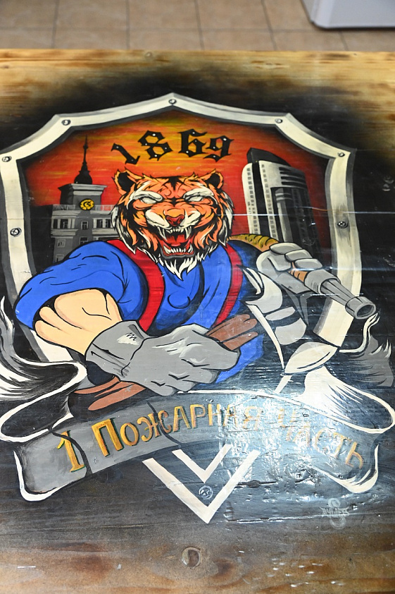 Пожарные называют часть своим вторым домом. Так как они проводят здесь целые сутки, то обеспечены всем необходимым и заботливо поддерживают уют. На столе в кухне изображен герб пожарно-спасательной части, а на нем знаковые здания в районе выезда – Шпиль и «Аквамарин», год образования подразделения – 1869. С пожарно-спасательной части № 1 началась история пожарной охраны Алтайского края, это было первое подразделение в крае, хотя раньше находилось по другому адресу.