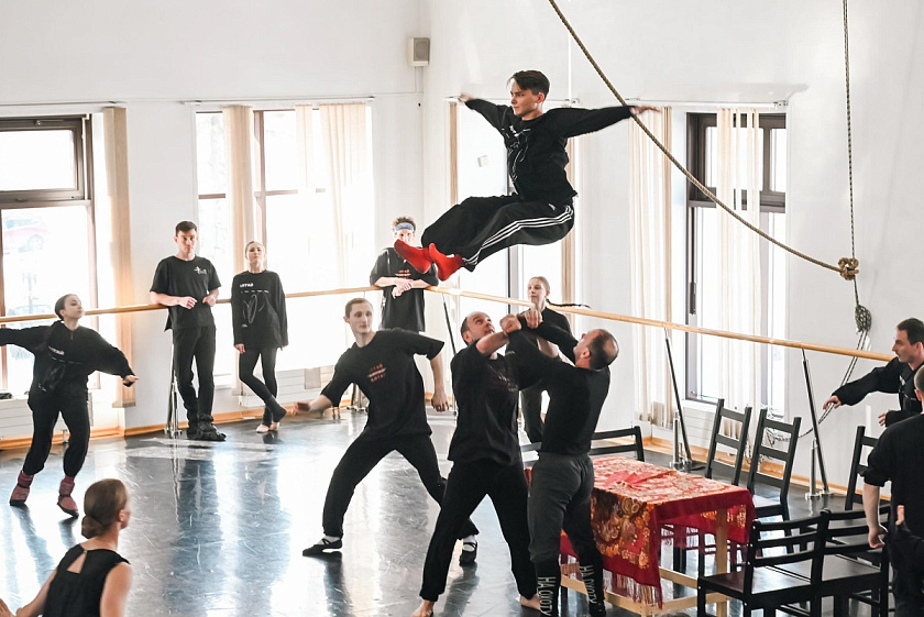 — Мне очень интересно работать с ребятами как с танцовщиками, они отлично ориентируются в современном танце и понимают, о чём я с ними разговариваю. Нравится доставать из них то, показывать их с такой стороны, с какой они себя ещё не видели. Конечно, у каждого из них есть свои нюансы, свои суперспособности, и мне хочется достать всё это и показать более выпукло и объёмно. Для меня важно раскрытие человека и как персонажа, и как исполнителя, важно, чтобы человек чувствовал себя комфортно и уютно в той или иной хореографии. Сейчас мы находимся в процессе нащупывания языка спектакля, пути, а в следующий мой приезд уже начнём целенаправленно и полнометражно погружаться в хореографию и режиссуру, — поделился Александр Могилёв.