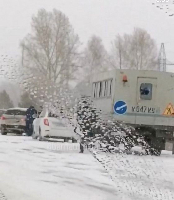 Очевидцы сообщают о массовой аварии между Новоалтайском и Барнаулом, не доезжая коттеджного посёлка Фирсово.